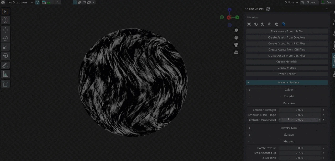 Adjusting this parameter determines the strength of the emission effect. Higher values result in a brighter emission, while lower values create a dimmer emission.